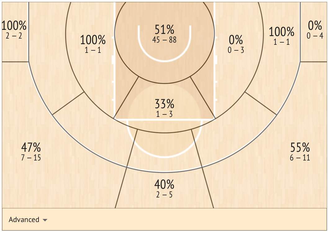 De la mano del Catch & Shoot, también debo incluir en esta estadística los datos sobre el Pick & Pop, acumulando 1,2 posesiones por partido y anotando 1,06 puntos por posesión.